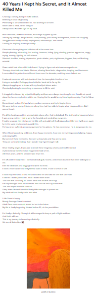 To be able to write, with the possibility that it to might help someone, is a miracle for me.